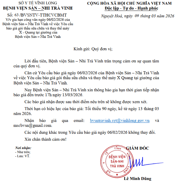 • Công văn gia hạn báo giá gói thầu In ấn phẩm cho Bệnh viện Sản - Nhi