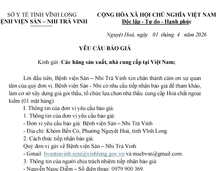 BỆNH VIỆN CHUYÊN KHOA SẢN - NHI TRÀ VINH