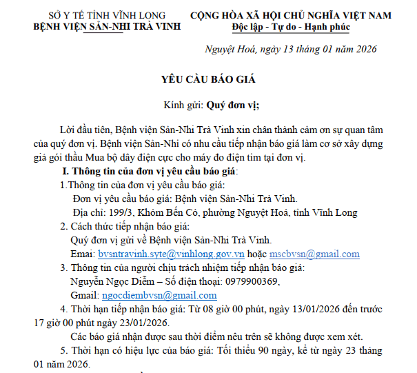 BỆNH VIỆN CHUYÊN KHOA SẢN - NHI TRÀ VINH