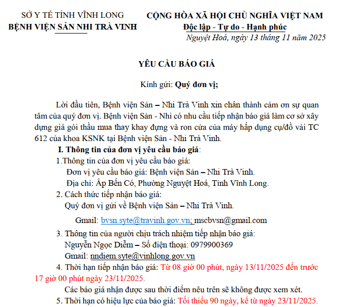 BỆNH VIỆN CHUYÊN KHOA SẢN - NHI TRÀ VINH