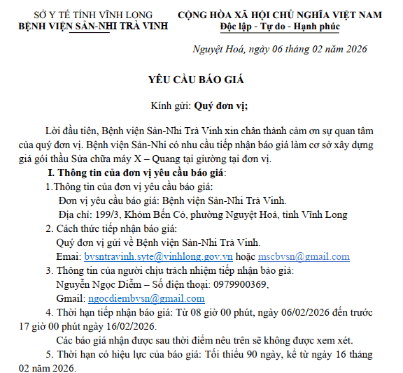 BỆNH VIỆN CHUYÊN KHOA SẢN - NHI TRÀ VINH